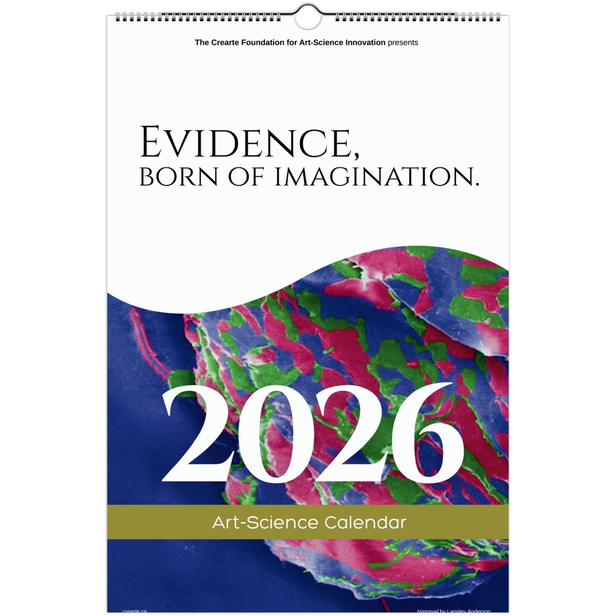 Evidence, Born of Imagination is a 12-month art–science calendar featuring original works by twelve interdisciplinary artists whose practices engage with research, experimentation, observation, and speculative thinking. Each month presents a distinct artistic investigation, revealing how imagination and evidence intersect across disciplines. Designed to function both as a practical calendar and a collectible publication, it brings thoughtful visual work into everyday spaces.